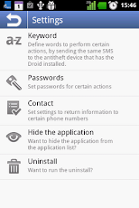 * Controle das ações do AntiFurto Droid através de mensagens de texto (SMS);