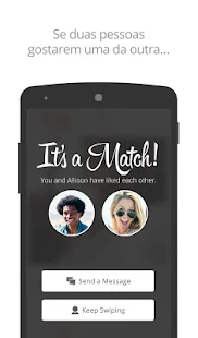 O Tinder é um jeito divertido de se conectar com pessoas novas e interessantes próximas de você. Passe as fotos para a direita para curtir ou para a esquerda para passar. Se alguém curtir você de volta, vocês combinam! Converse com sua combinação ou tire uma foto para compartilhar um Momento com todas as suas combinações de uma vez. É uma nova maneira de se expressar e compartilhar com seus amigos.